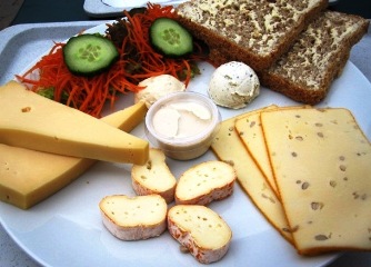 カフェテラスのある建物にはテーブルが並ぶ場所が数部屋あり、屋外のテラス席ではのんびりとくつろぐことができます。ギフトショップも併設されていて、ビールはグラスでなくマグカップ、これがまた絶妙に美味しいのです。食べ物も豊富でチーズ・パン・サラミなど、特にパンはお試しあれ!お土産にパンやチーズも購入できます。