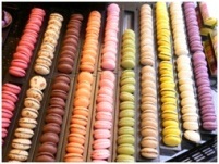 ケーキの隣にはカラフルなかわいらしさで日本でも大人気のマカロン。色々なフレーバーが揃っています。 (1個 €1.10)