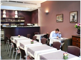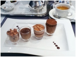 上の写真は「4種チョコレートデザートの盛り合わせ」。もちろんコーヒーや紅茶だけの場合でも、プラリネやマカロンが付いてきます。ショップの方で「どれを買おうかな?