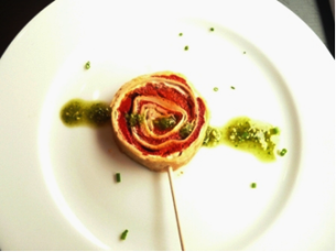 アラカルトでヤギのチーズサラダ蜂蜜ドレッシング(14€)。 サラダだけの注文でも少食の人には十分な量。