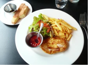 お店いちおしのブリュッセルワッフル。(写真が無いのが残念!) 食事時間以外のティータイムや早めの夕食代わりの軽食が人気です。 (ランチ・ディナーの食事メニューの時間帯は決まっていますが、営業時間は正午から23時までのノンストップ。ランチとディナーの間の時間帯には、サンドイッチ等の軽食やワッフル・クレープ、アペリティフ用のおつまみなどがオーダーできます。)