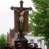 このパレードは、キリストの聖血をフランドル伯爵がエルサレムから持ち帰ったという言い伝えに由来しています。その後フランドル伯爵は聖血礼拝堂を建て聖櫃(せいひつ:聖血が入っている)を納め、市民は聖櫃に敬意を表して行列するようになったそうです。